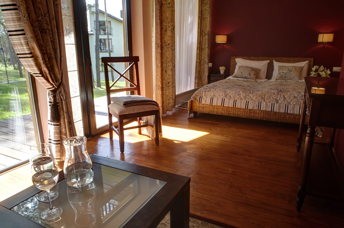 Viešbutyje siūlome rinktis 18 standartinių kambarių. Patogūs viešbučio kambariai ir jaukiai įrengtos vilos išsiskiria santūriu, nepriekaištingu stiliumi, švelnių spalvų ir formų detalėmis. Viešbutyje nėra lifto. Į viršutinius aukštus galima pakilti tik laiptais.