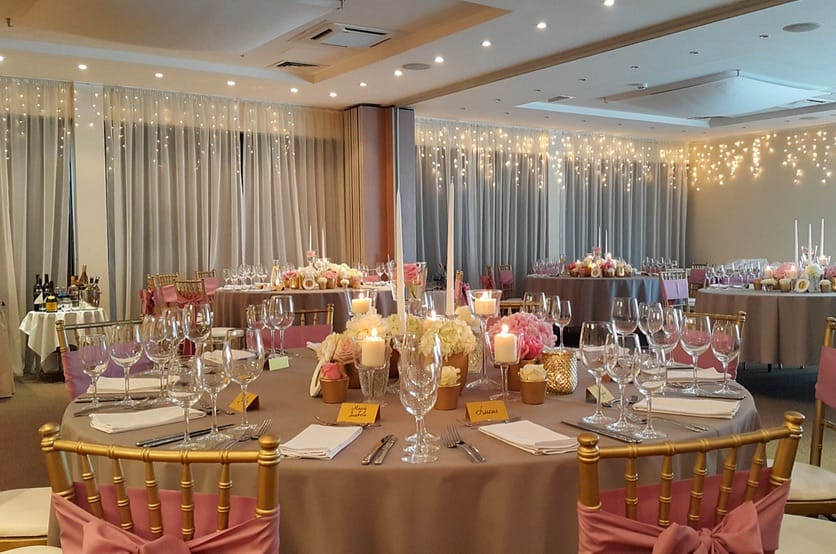 – Salė šventei pasirinktinai: Didžioji (180 m2) / Mažoji (47 m2 / Ežero (100 m2) – derinama pagal svečių skaičių –